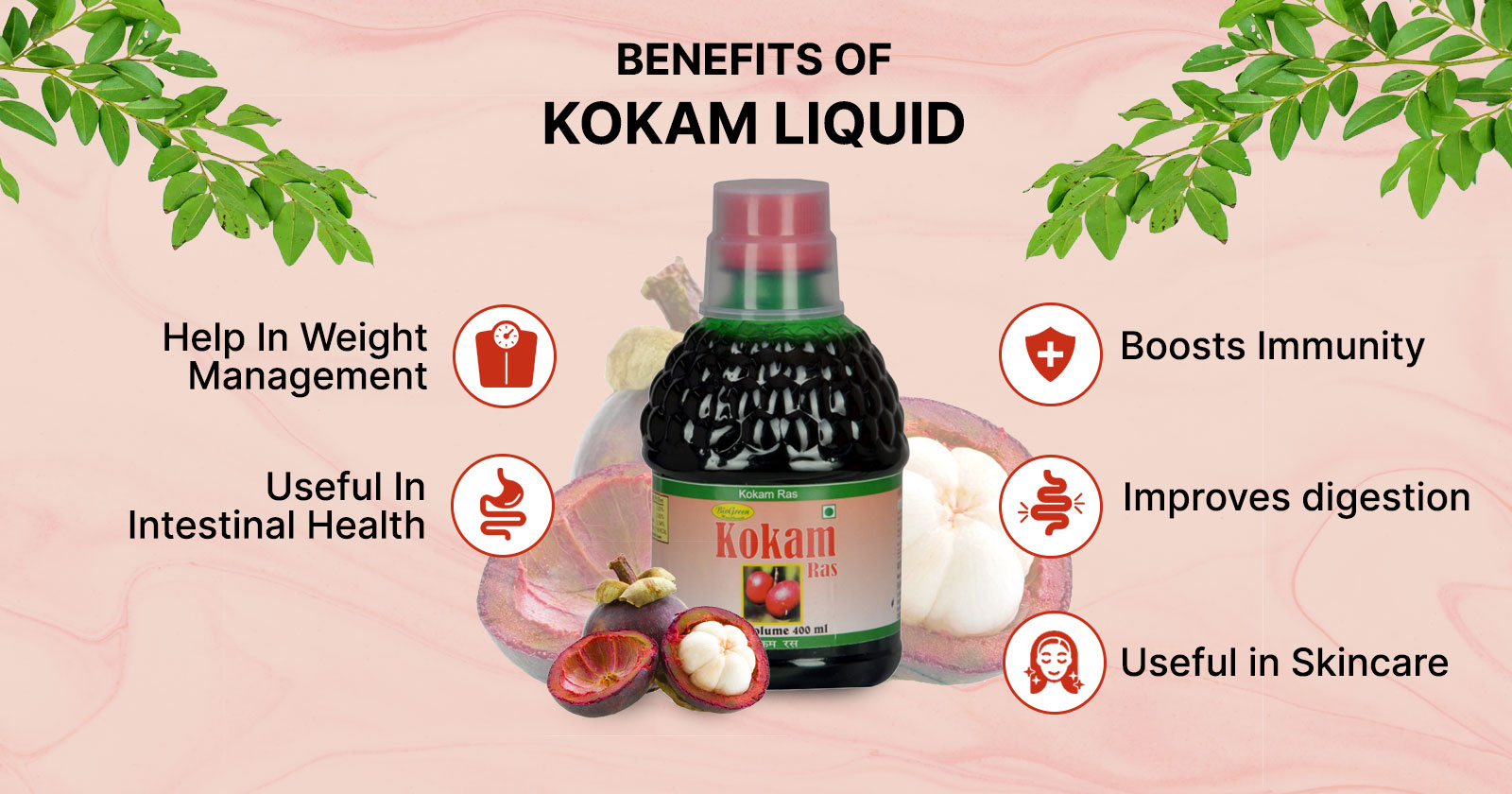 Acidity can be a recurring problem for a lot of people. Kokum is known to ease acidity and reduce inflammation. It is a convenient way to fight stomach ulcers naturally and has a cooling effect on the body.